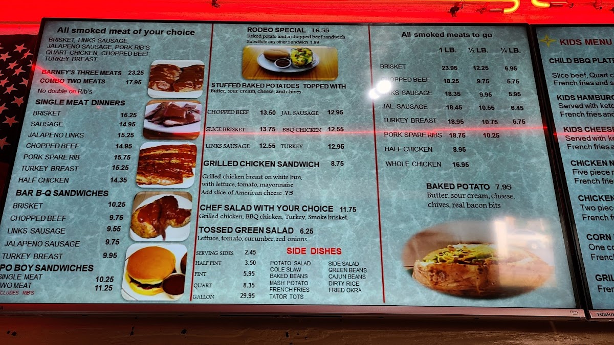 Barney's Texas BBQ, located in Houston, TX, is a must-visit for BBQ enthusiasts. Known for its super friendly staff and welcoming atmosphere, this restaurant offers a mouthwatering selection of smoked meats, including perfectly seasoned brisket, tender pork ribs, and spicy jalapeño sausage. Customers rave about the quality of the food, with highlights like the chopped beef and flavorful sides such as coleslaw and baked beans. Desserts, like the peach cobbler, might vary in appeal, but the overall experience leaves diners eager to return. Whether you're a local or just passing through, Barney's Texas BBQ promises an unforgettable meal that satisfies any carnivore's cravings.